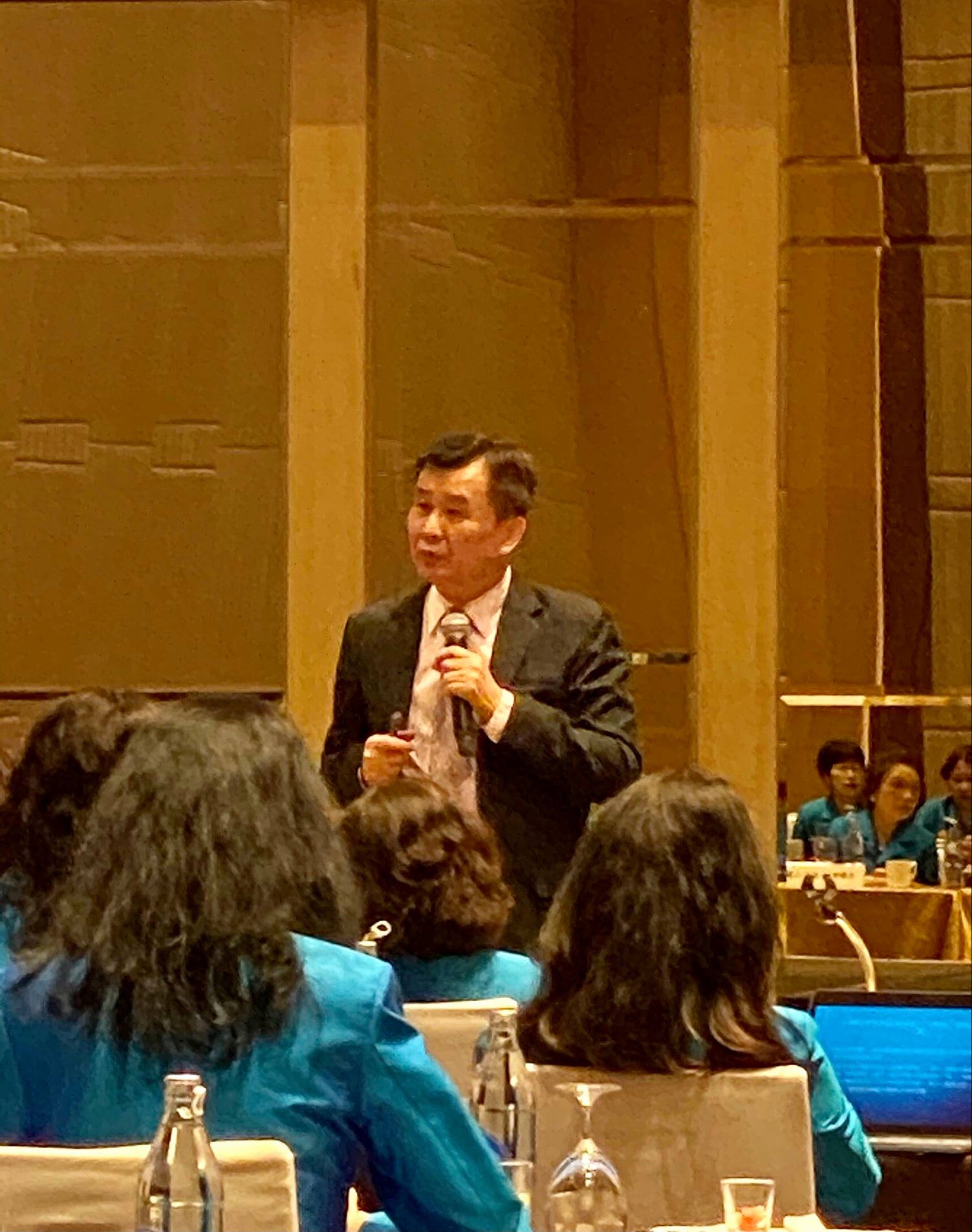 會中各位名譽會長對世華泰國分會姐妹們在12月晚會的表現做了高度的評價,鼓勵姐妹們努力發展會務。林何佩娟名譽會長還精心為姐妹們準備了伴手禮!本次例會妙音會長也要約了駐泰代表處僑務組的高家富組長出席,蒞臨指導。會後姐妹們聆聽了陳秋發教授關於‘疫情後全球趨勢’的講座,受益匪淺!整體活動在愉快和諧的氣氛中進入尾聲,最後全體會員做了合照!