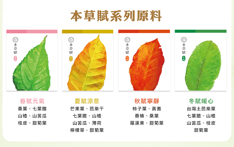 「本草賦」堅持應用”賦予植物本體的生命力量”,提供一套現代人能簡單攝取複方植化素、強化身體機能的解決方案。對於難以餐餐均衡食用到五色蔬果的人們來說,每日一杯茶飲便能協助補充到對人體如此重要的營養素,是非常便利的!
