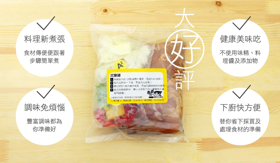 花花煮婦重視食品安全問題,從產品開發測試階段即同步針對食材來源進行嚴格篩選,品質有保障。當日蔬果肉品食材皆是接單後才進行採買進貨,並經嚴謹排程製作包裝而成。