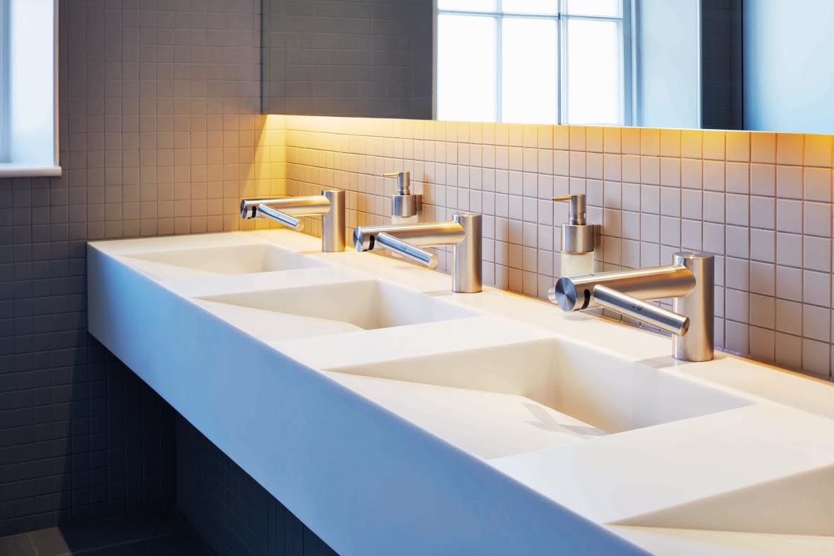 結合水龍頭及乾手機設計,紅外線感應,洗手、乾手原地完成,地板不再溼答答。二款機型皆適合商業空間、居家安裝。